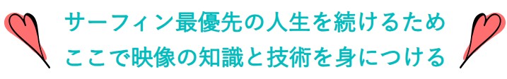 これまでも母がホームビデオで撮影してくれたのですが、撮影や編集も含めて自分でできるようになれば様々な可能性が広がります。「自分の好きなことで稼いでいく」という願いと、「10年続けてきたサーフィン中心の生活をこれからも崩さない」というこだわりを実現させるため、情報大での4年間は試金石になると思っています。なので履修登録をする際もサーフィンが優先。
