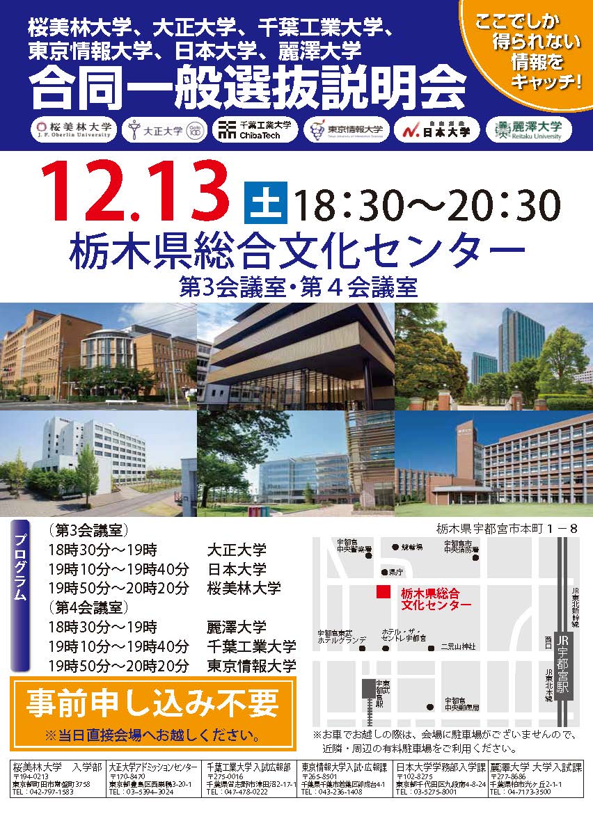 [12/13(土)宇都宮で開催!!] 6大学合同入試説明会に参加します
