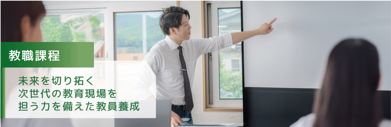 教職課程を修めようとする者は、本学部に設置された共通基礎科目及び各学科の専門教育科目の単位の修得の他に、必要な教職関係科目の単位を修得しなければなりません。