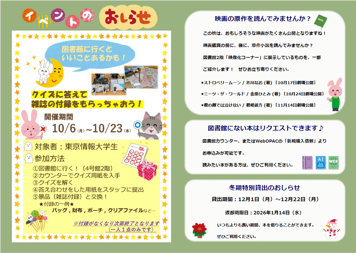 夏季長期貸出のお知らせ(2025年7月14日更新)