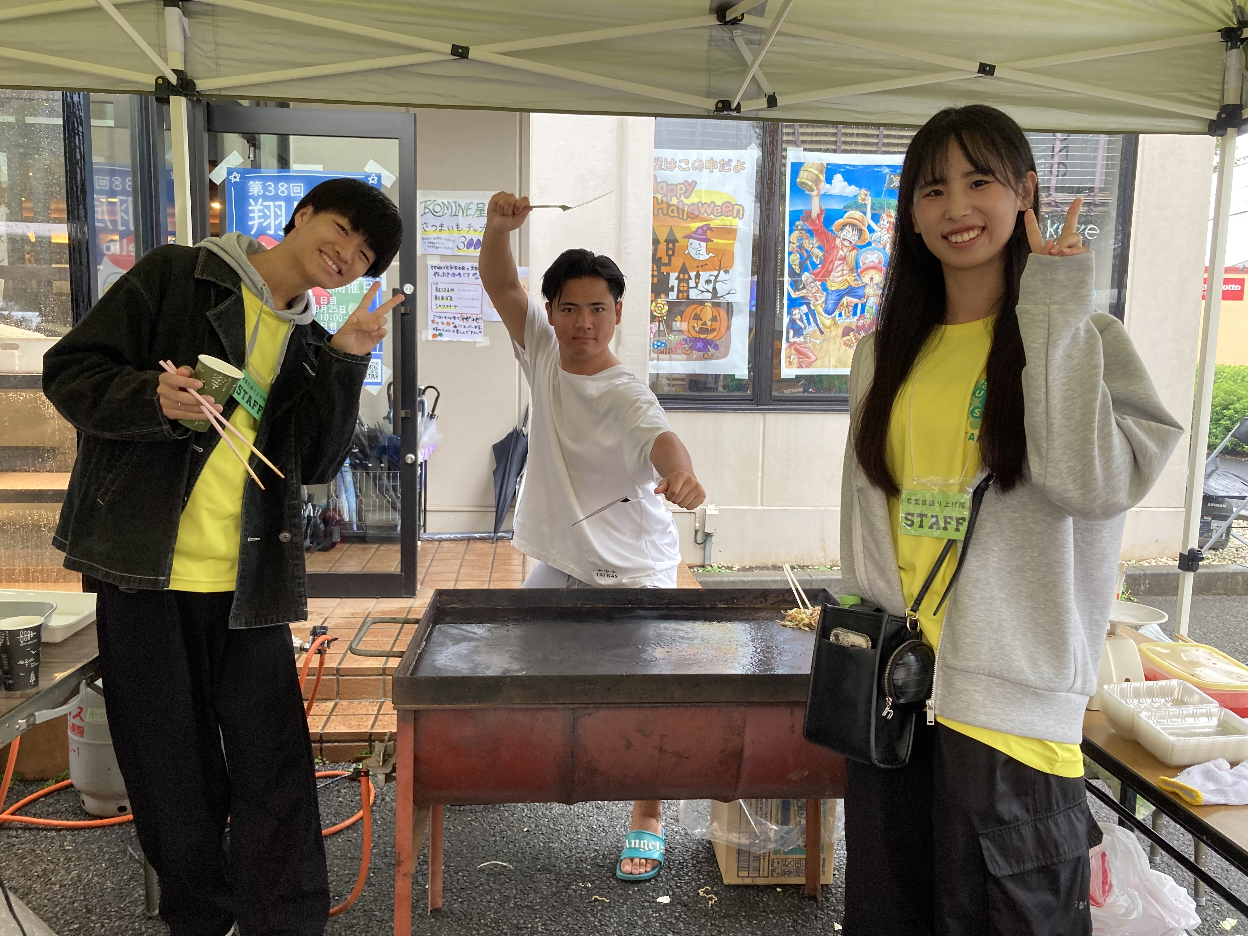 学生たちは、屋外のソーセージ・焼きそばの屋台と、屋内の射的の手伝いを担当しました。屋台では雨と寒さの中、懸命に作業を行い、射的では次々と訪れるお客様にてきぱきと対応していました。また、呼び込みにも積極的に取り組み、イベントを盛り上げました。