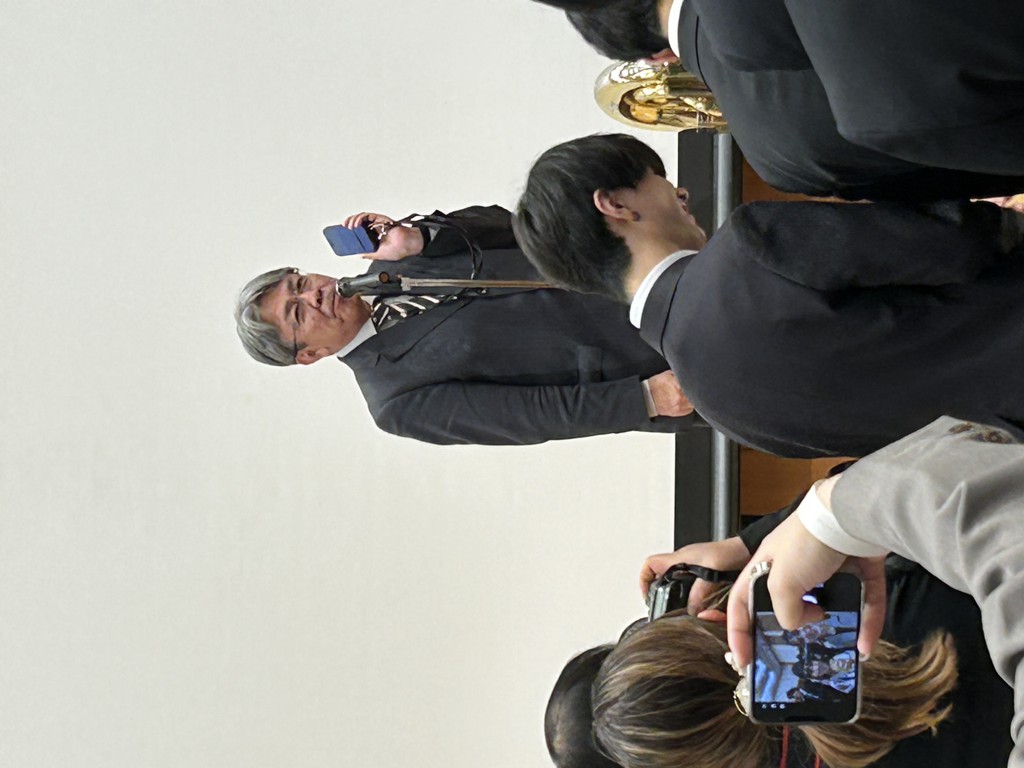 歓談の時間には、吹奏楽部による華やかな演奏をBGMに、ビュッフェ形式の食事を楽しみながら、学生同士や教職員との語らいが広がりました。
